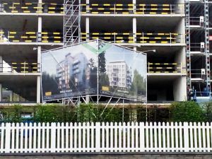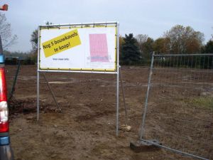 Je signalisatie op een spandoek in frontlit 500 gr/m² of Mesh (winddoorlatend) met zeilringen om de 30 cm